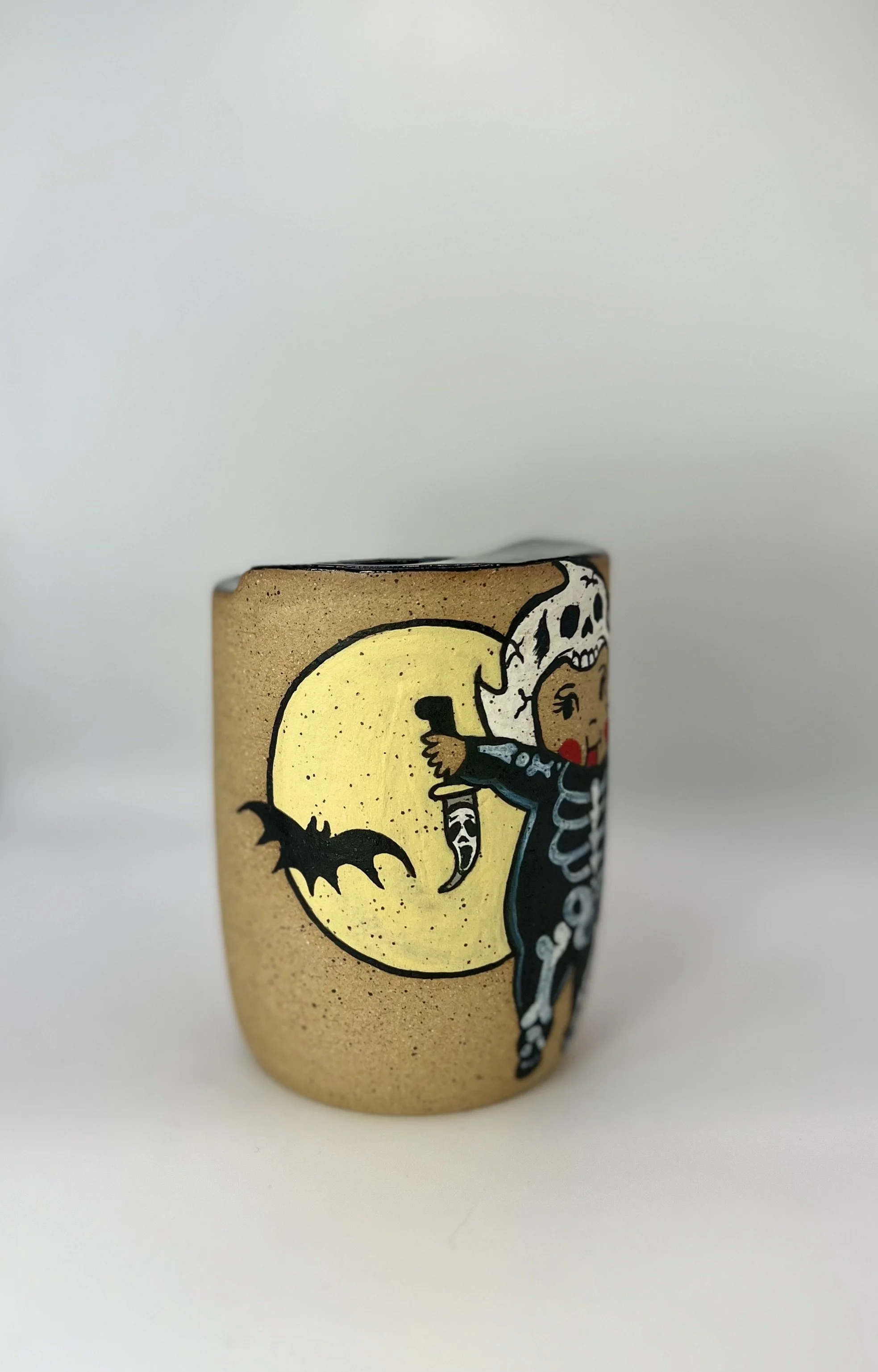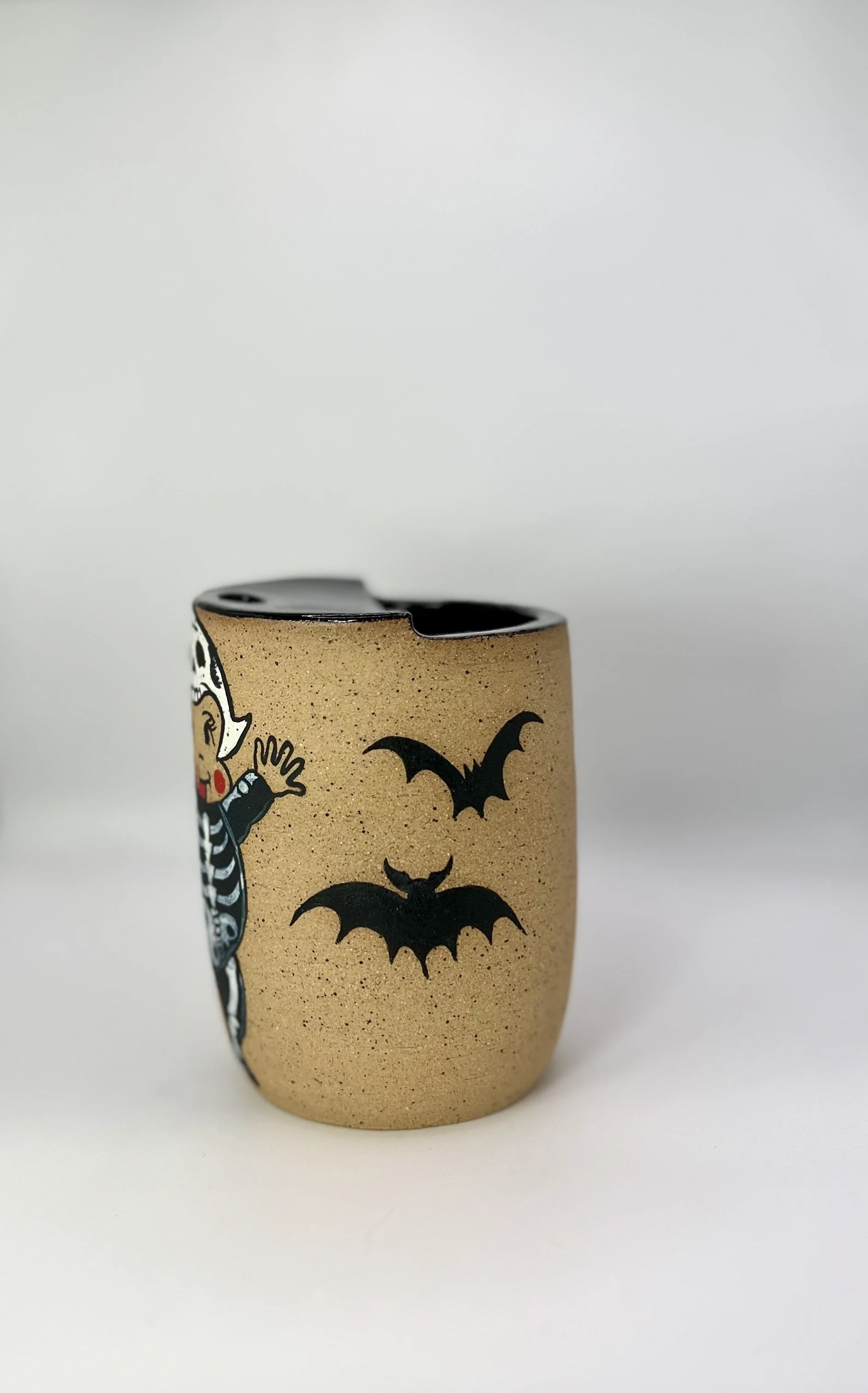 Wheel thrown and hand painted. This piece can hold approximately 8 oz of liquid.