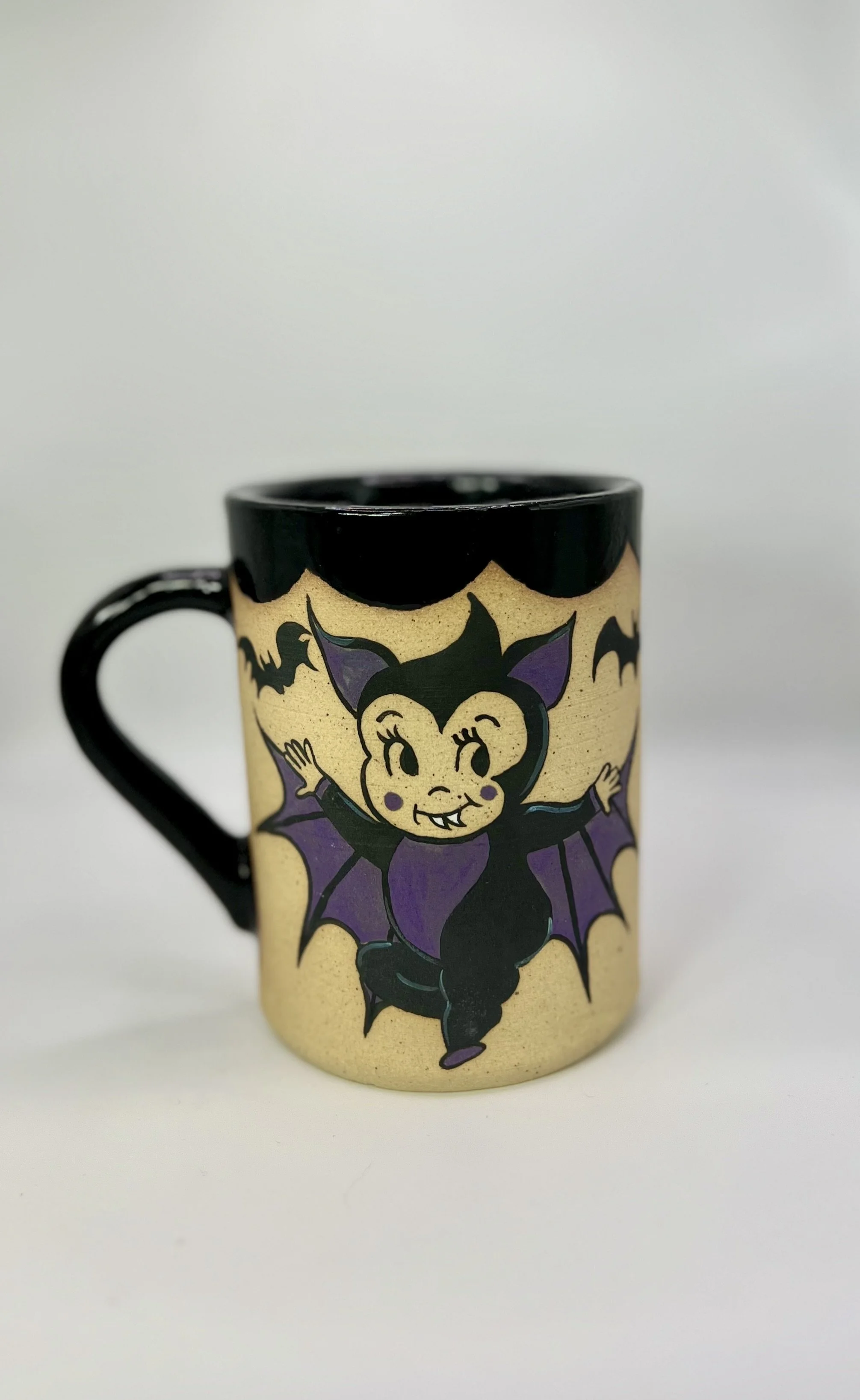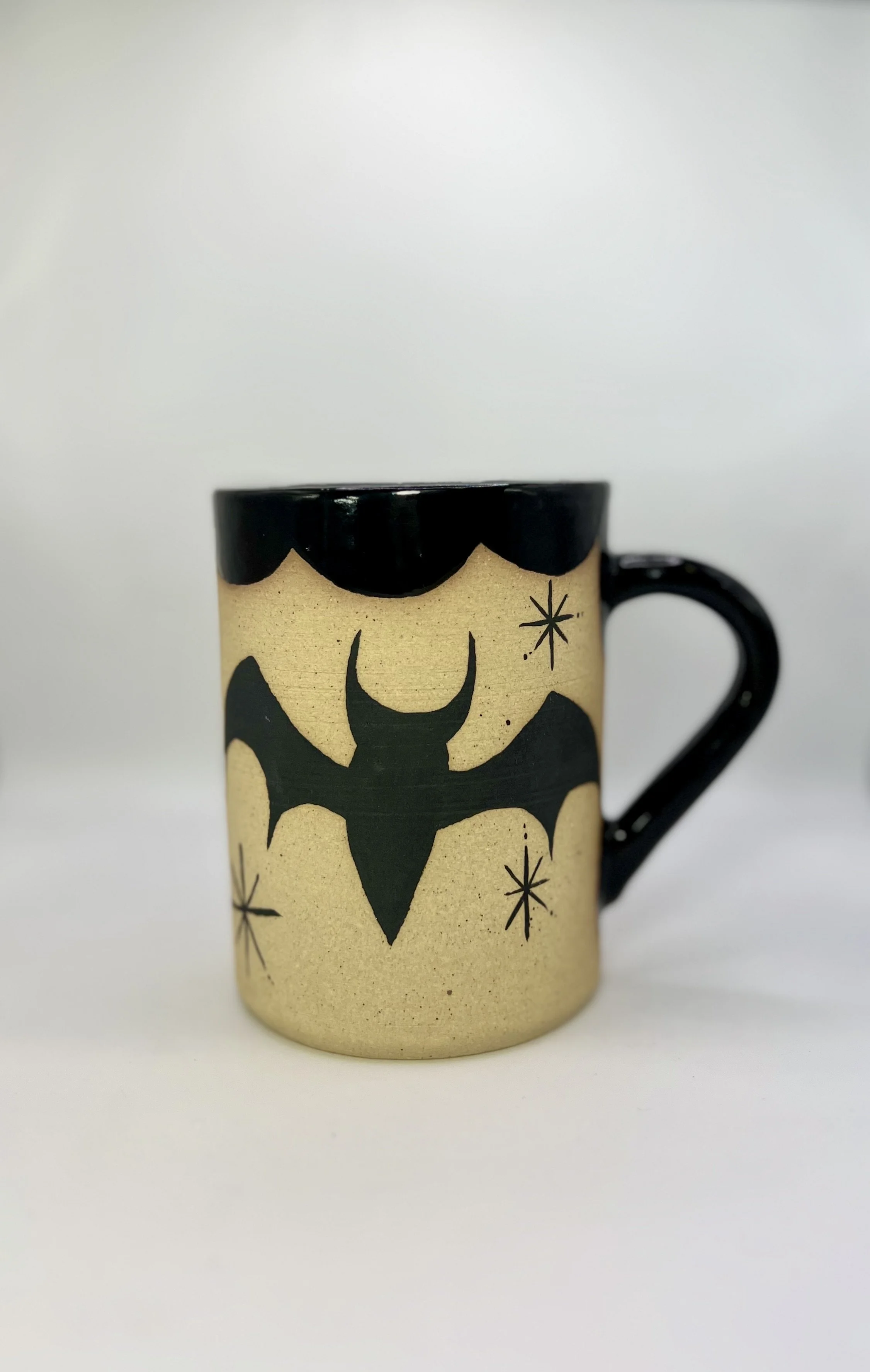 Wheel thrown and hand painted. This mug holds approximately 10 oz of liquid.