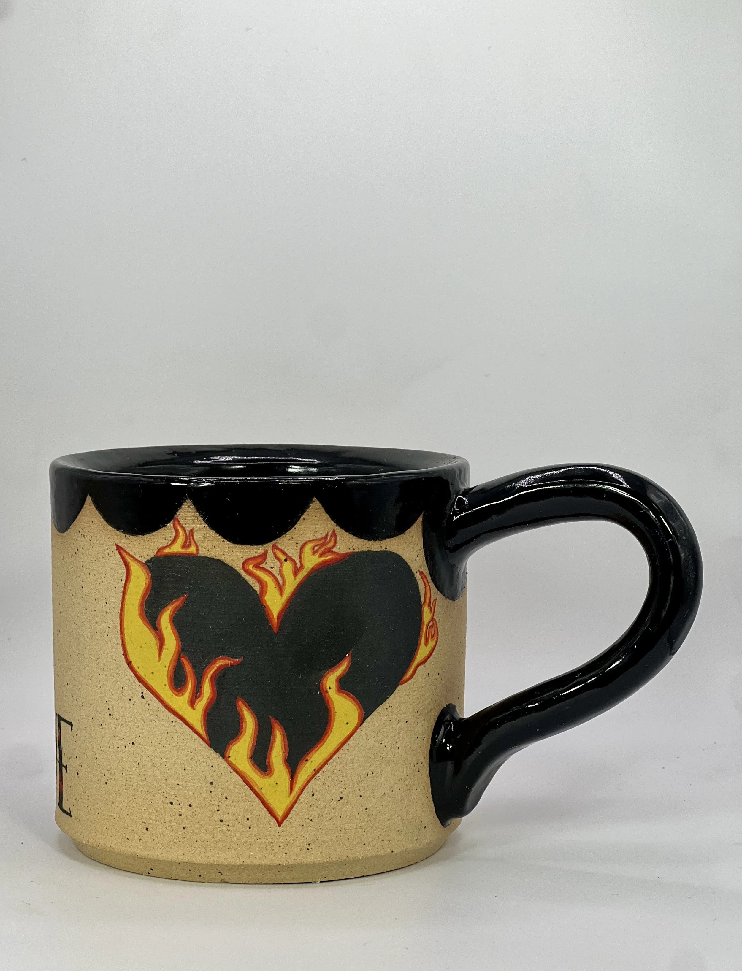 Wheel thrown and hand painted. This piece can hold approximately 12 oz of liquid.