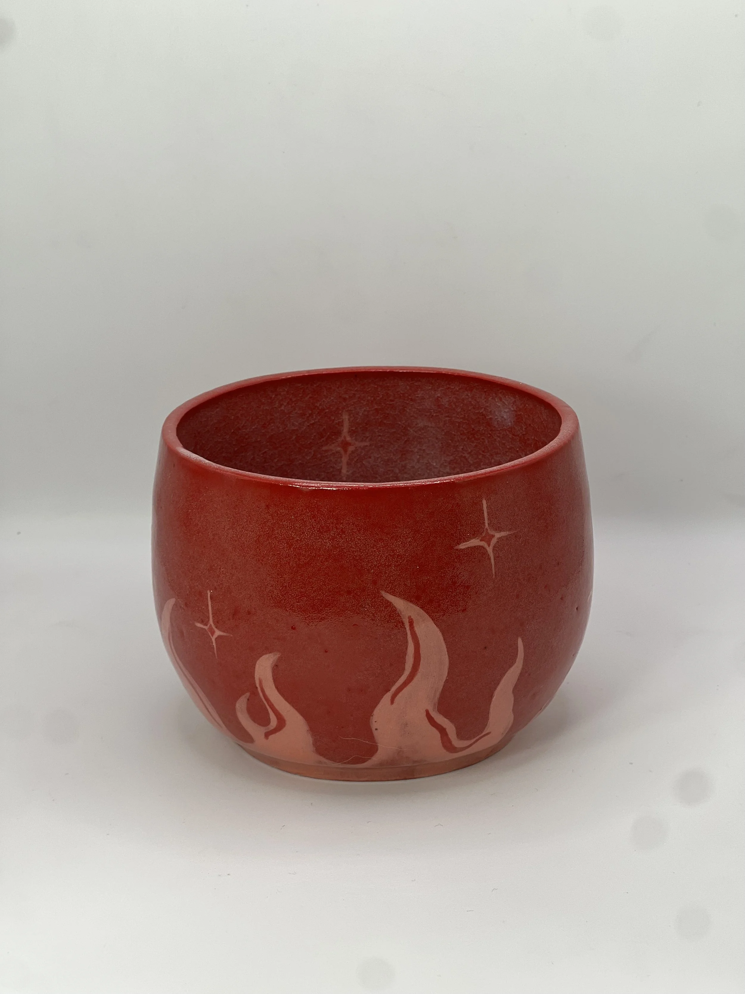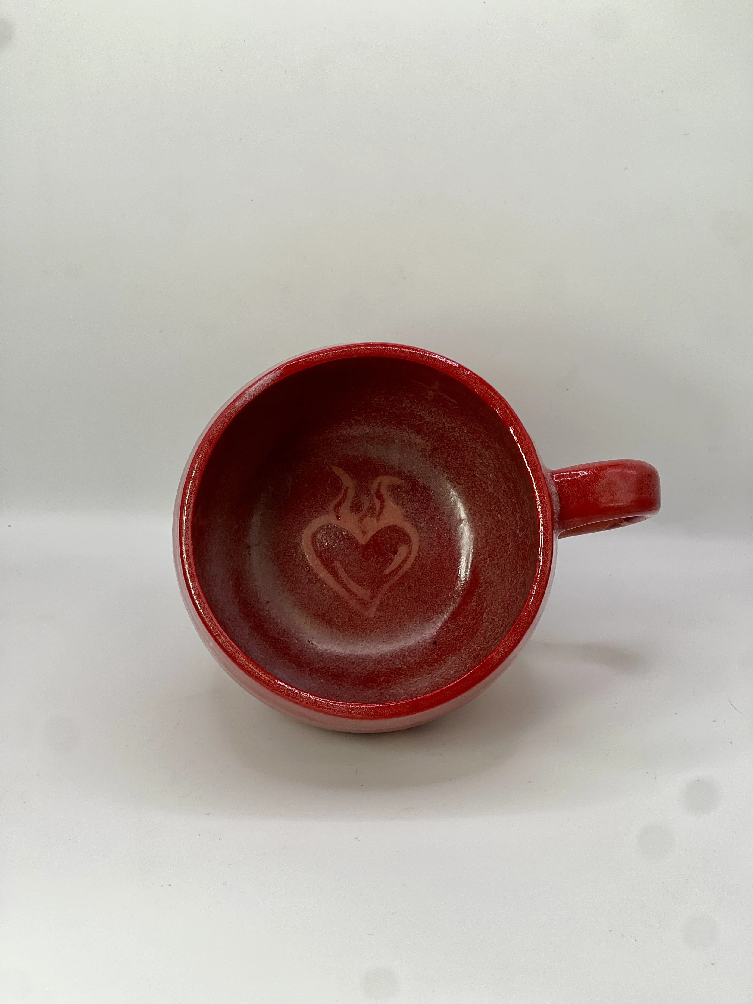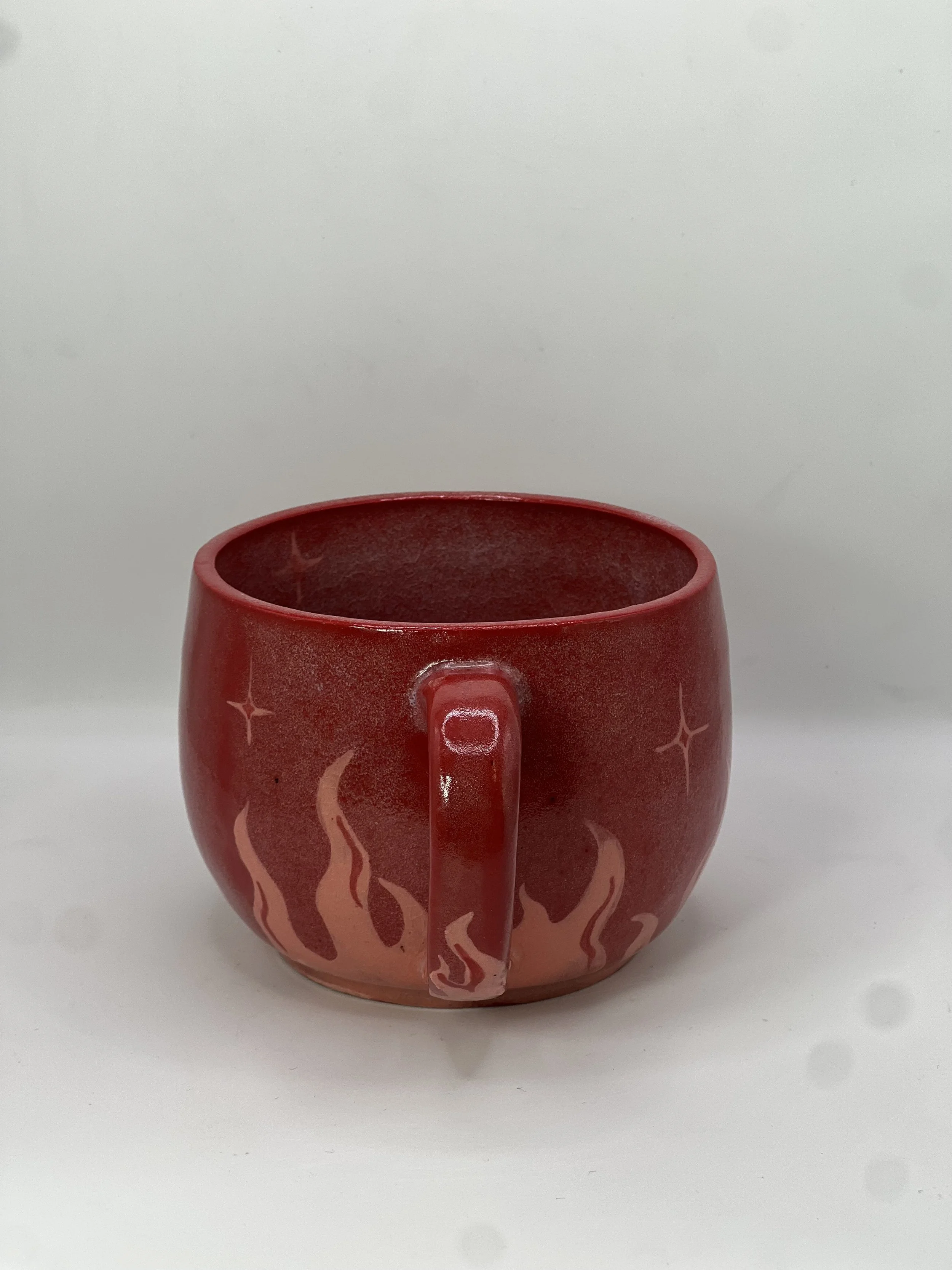 Wheel thrown and hand painted. This mug holds approximately 14 oz of liquid.