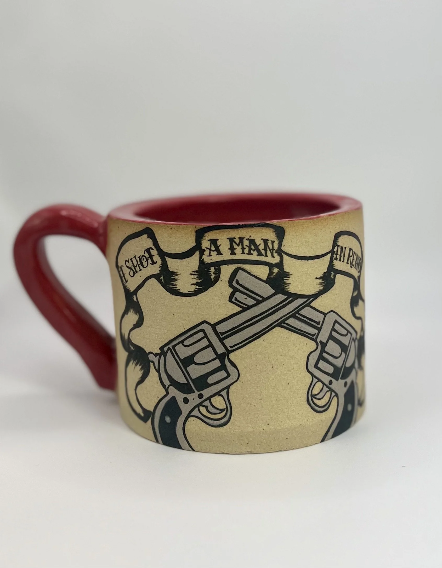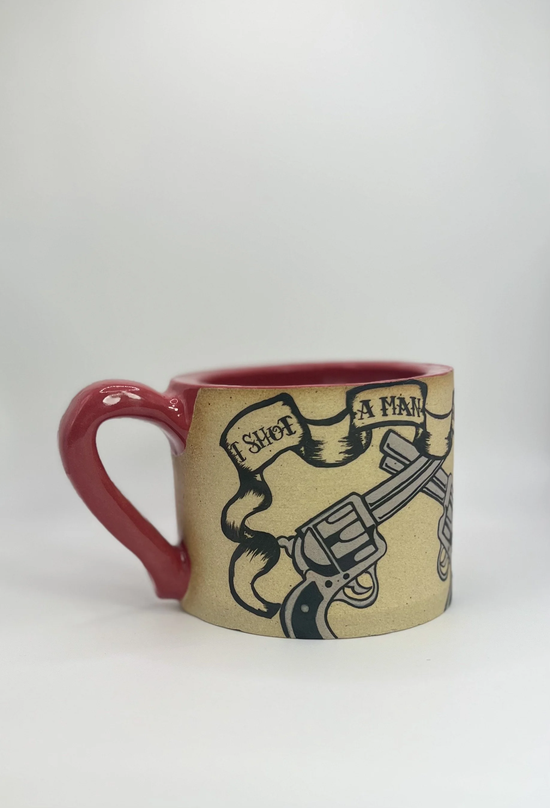Wheel thrown and hand painted. This piece can hold approximately 12 oz of liquid.