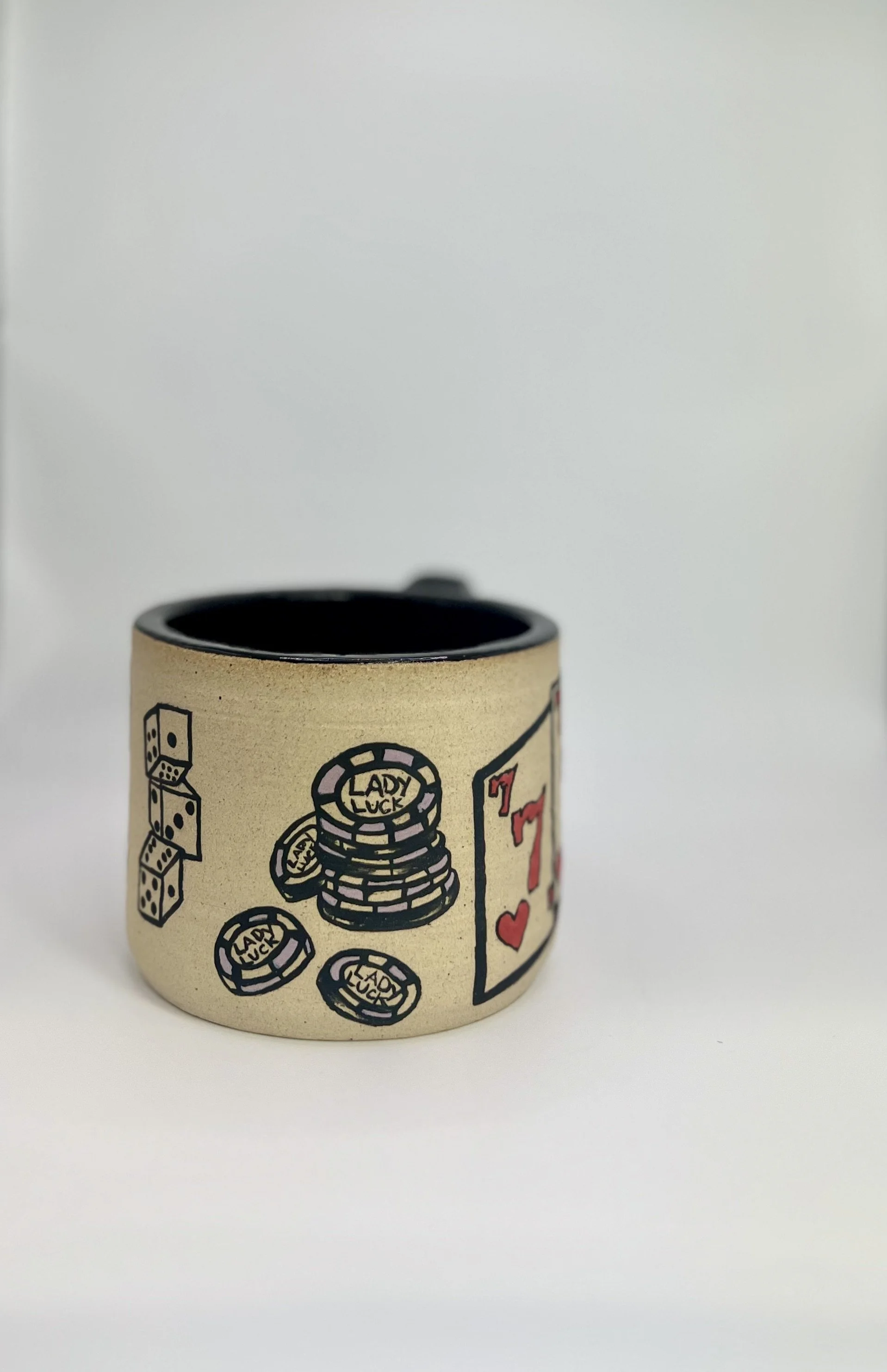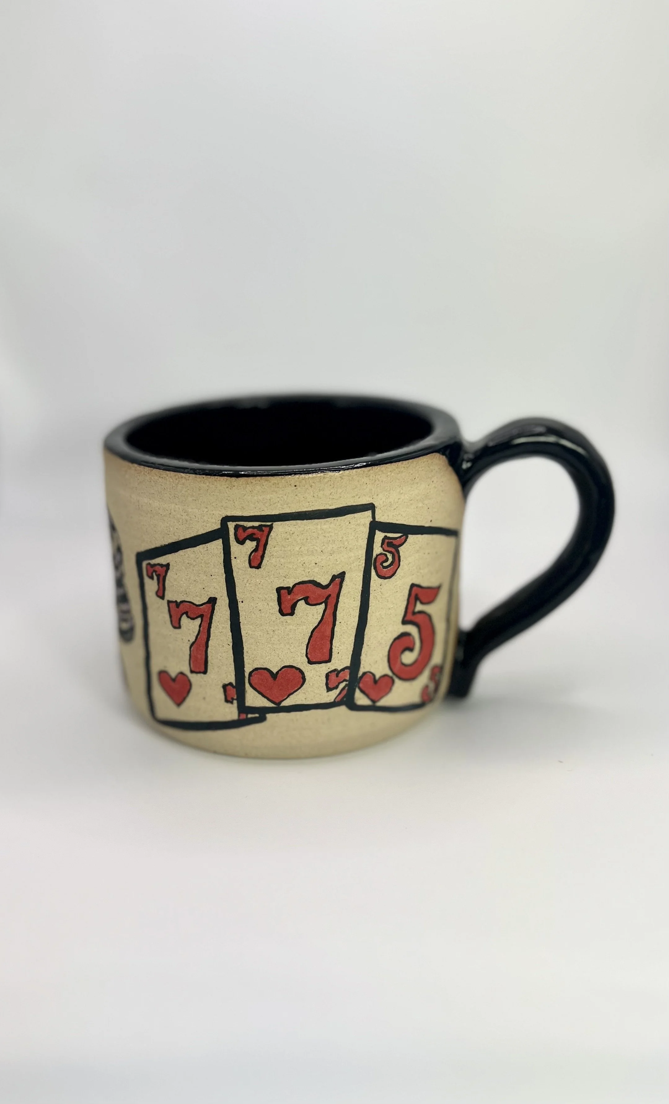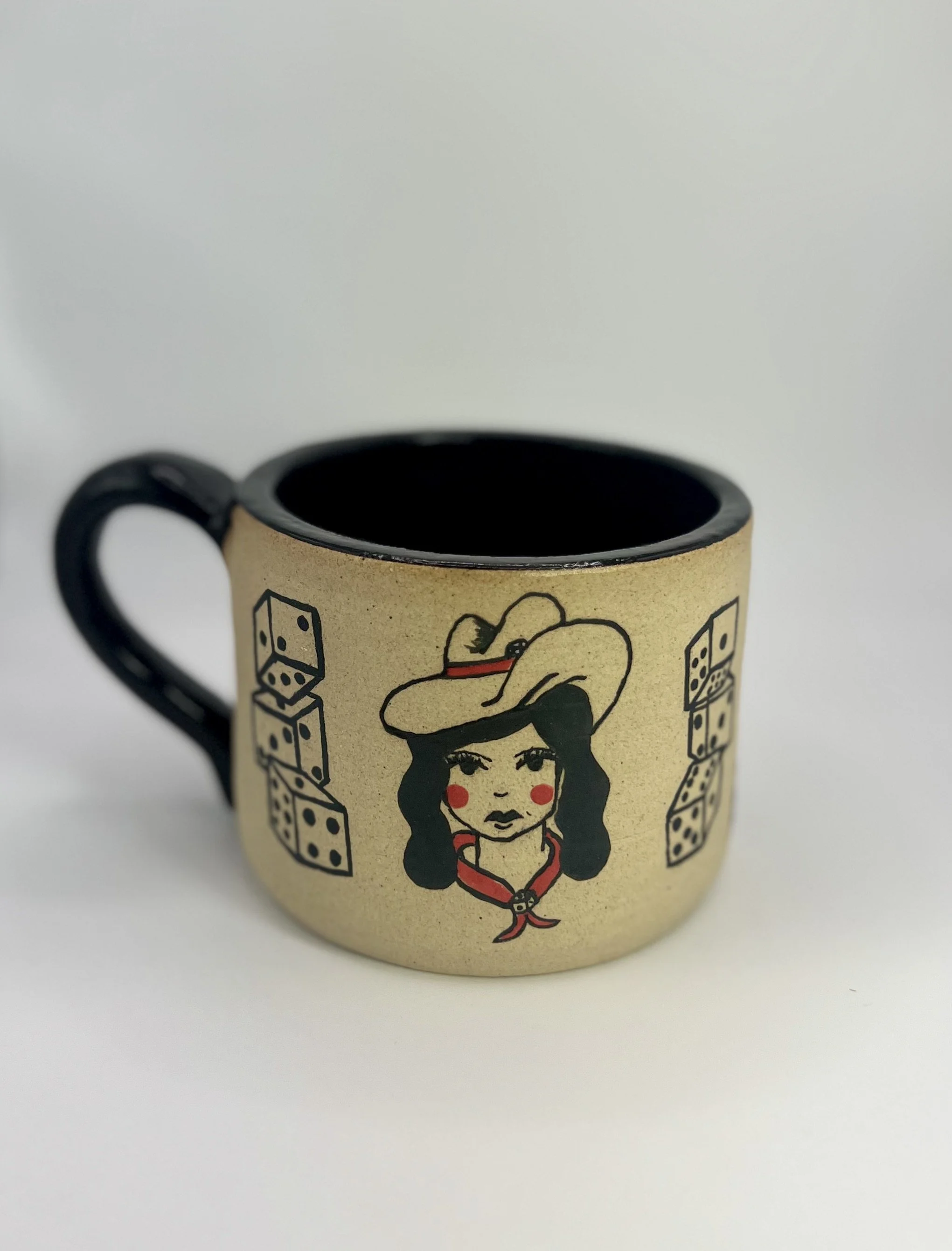 Wheel thrown and hand painted. This piece can hold approximately 10 oz of liquid.