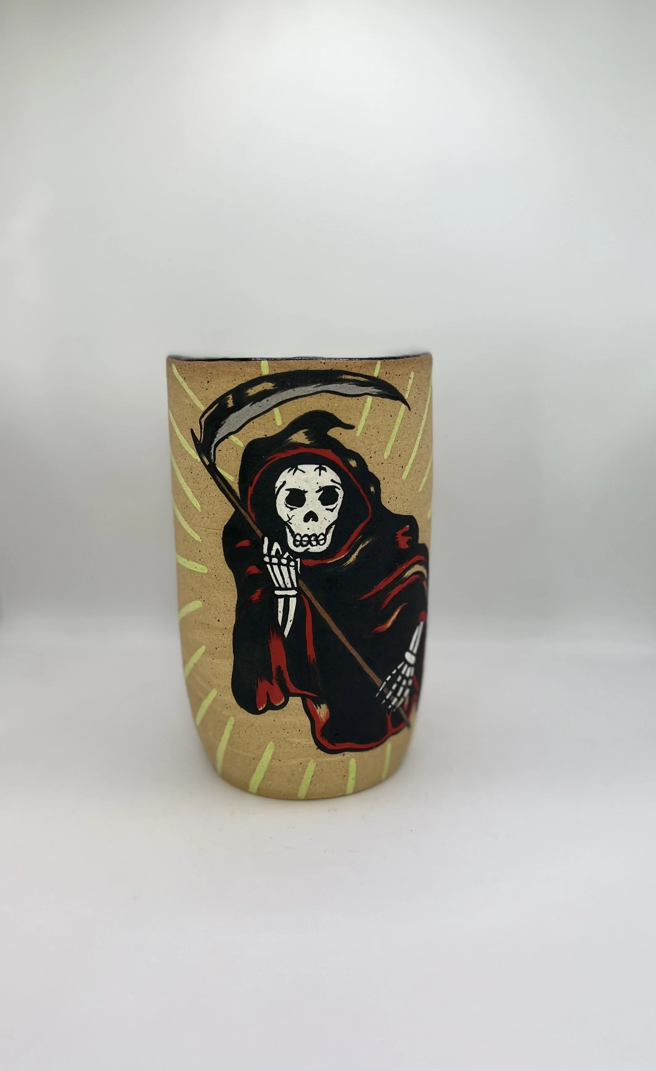 Wheel thrown and hand painted. This piece can hold approximately 12 oz of liquid.