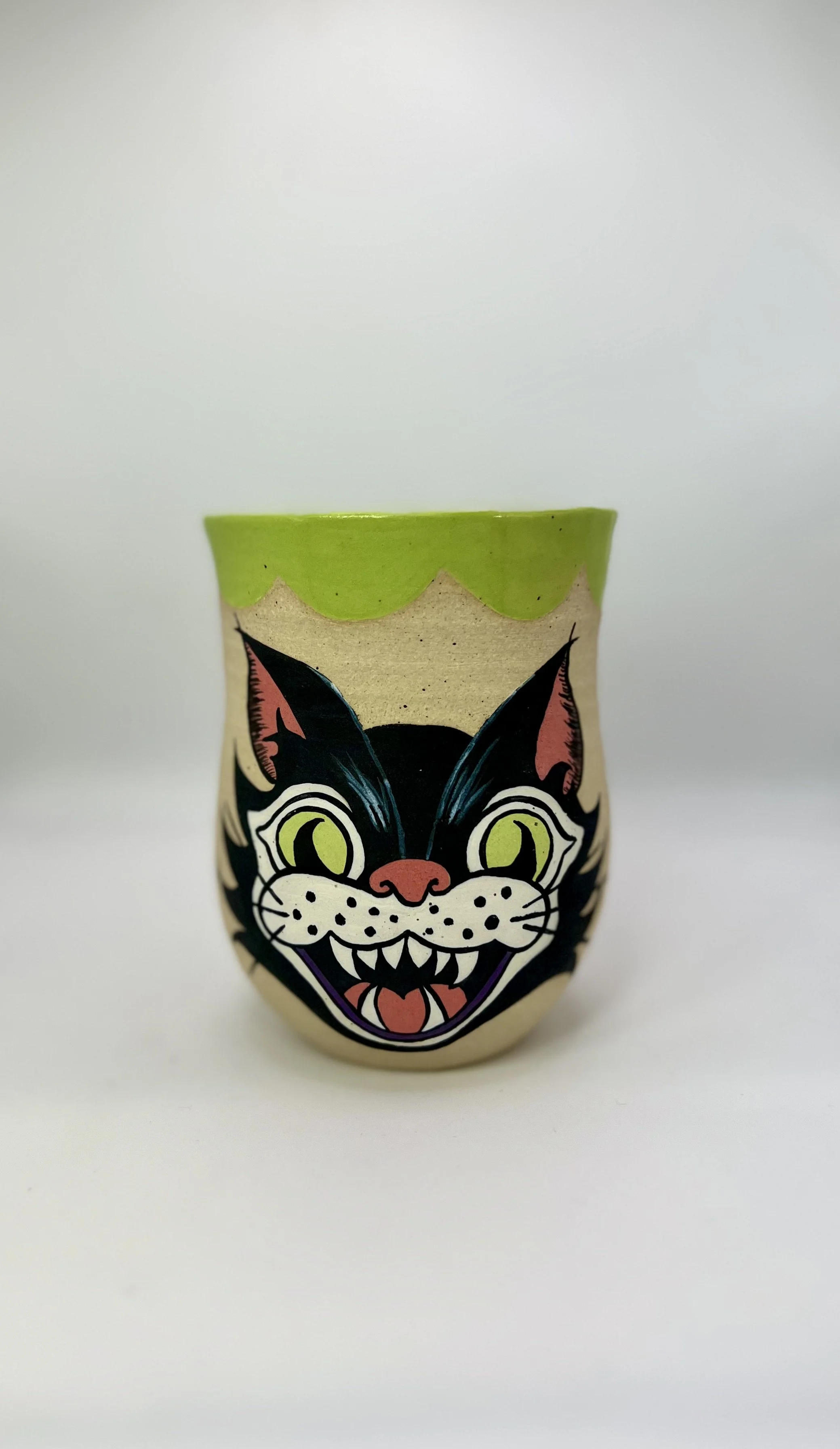 Wheel thrown and hand painted. This piece can hold approximately 12 oz of liquid.