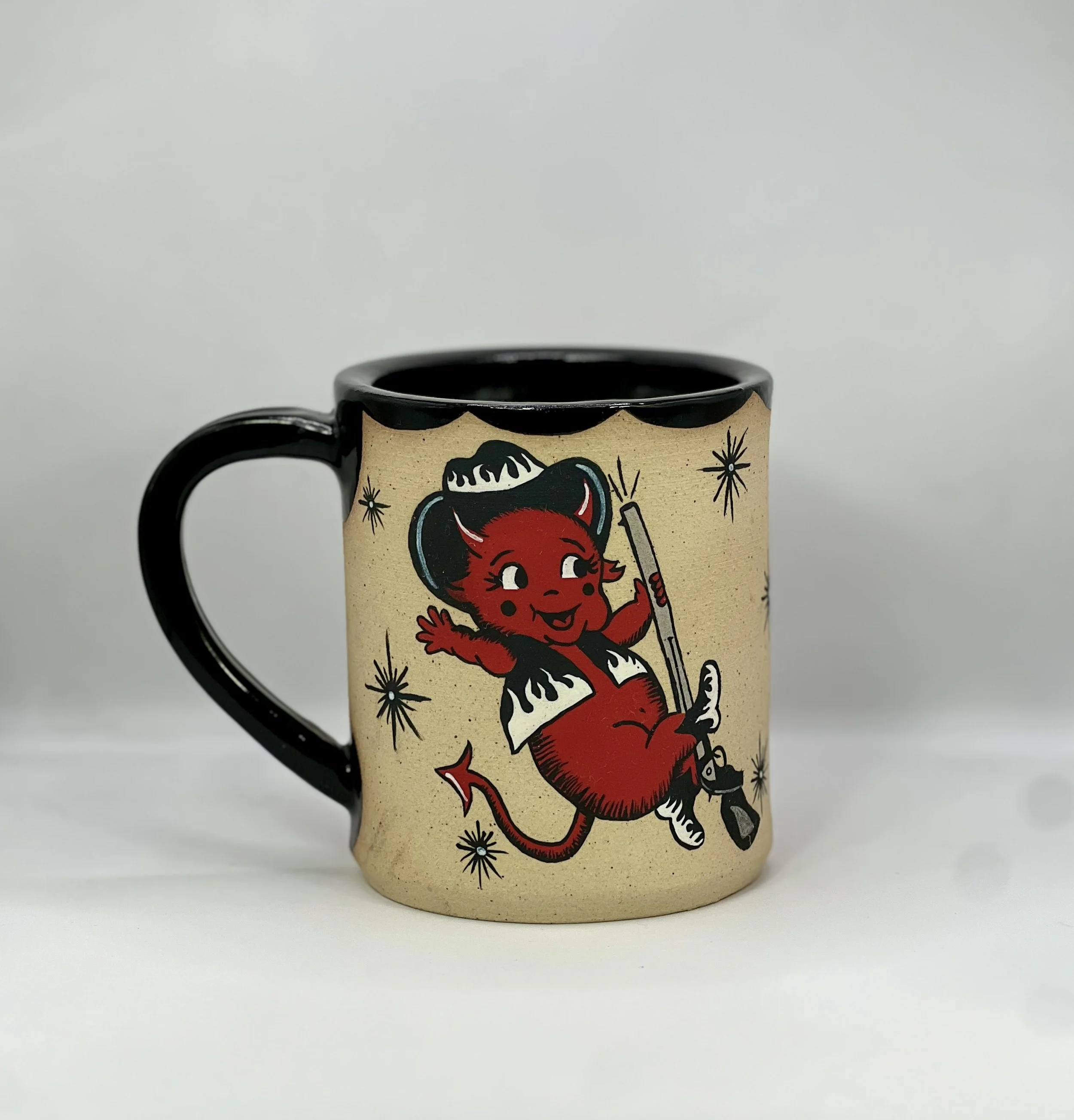 Wheel thrown and hand painted. This mug holds approximately 12 oz of liquid.